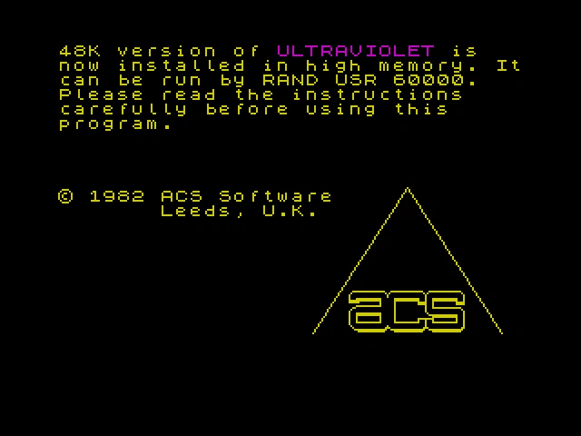 RARE ZX Spectrum Tape – Ultraviolet : ACS Software – Very Good Condition